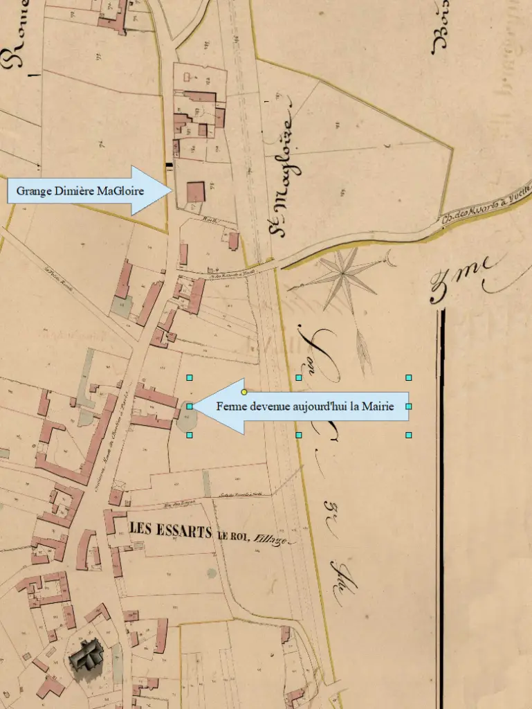 Sur le plan cadastral de 1829, on voit que la grange donne sur une ruelle en impasse, la route de l’Yvette (de l’époque) sera légèrement déplacée pour aboutir dans cette ruelle (je n’ai pas trouvé la date de ce déplacement mais avant 1905)